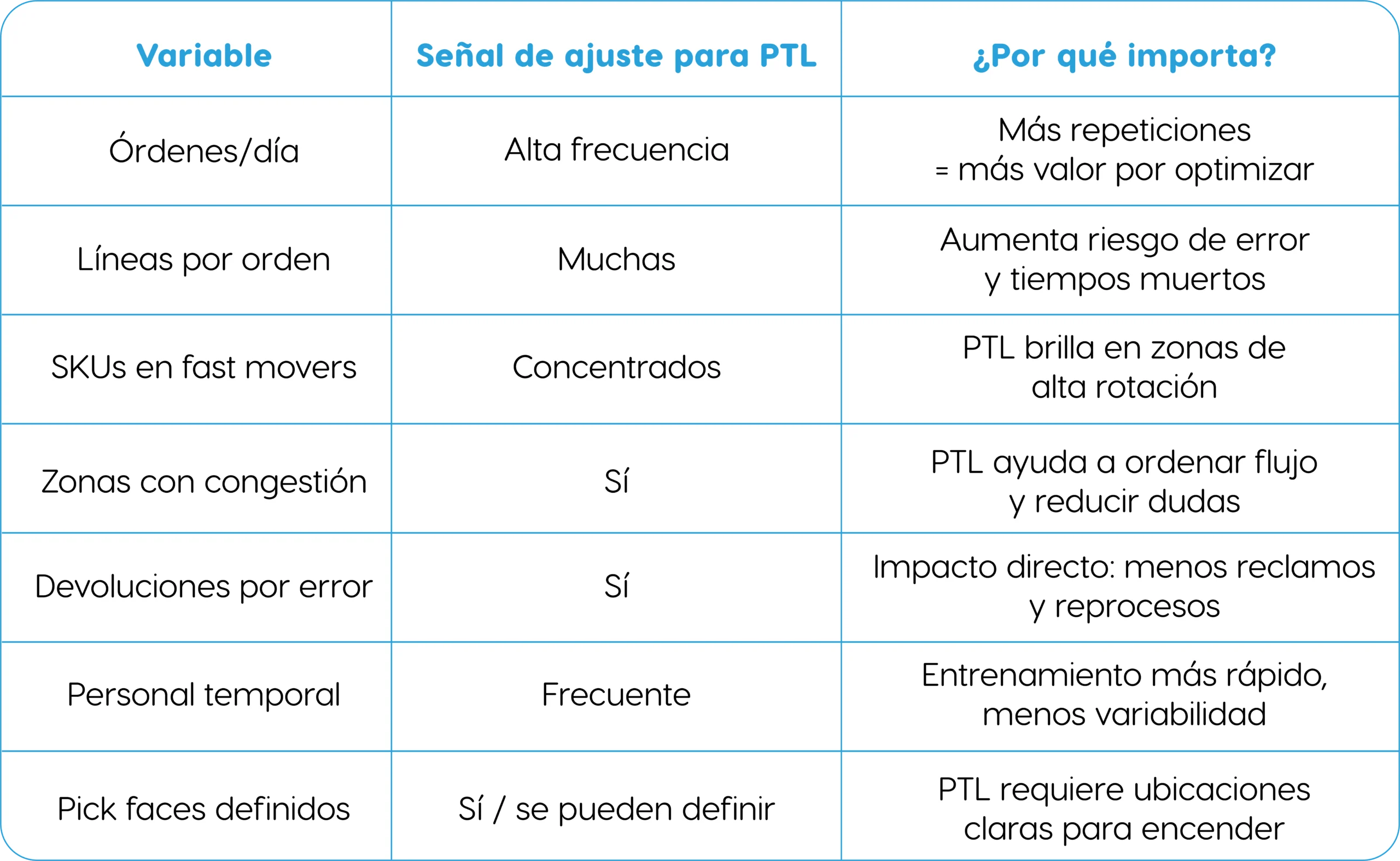 Importante: PTL no es “magia”. Es diseño de proceso + señalización + confirmación. Bien implementado, eleva el estándar operativo.